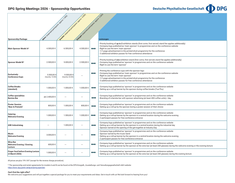 For the DPG Spring Meetings 2026 we offer the following sponsorship opportunities (please click on the image to open the picture as Pdf file):